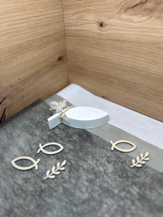 ✨ Symbolische Kerzendeko „JESUS-Fisch“ ✨ mit optionalem Dekoset